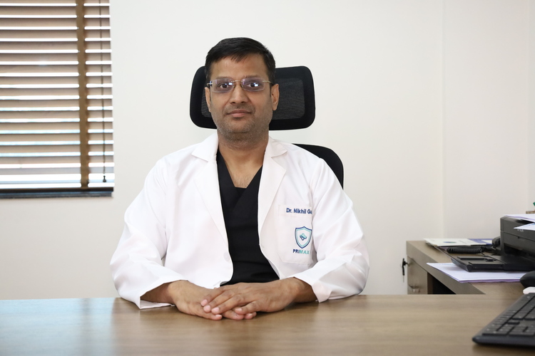 Dr. Nikhil Gupta, GI & Cancer Surgeon at Primax Hospital Sonipat, specializing in GI cancer surgery, CRS + HIPEC, and robotic minimally invasive GI procedures.